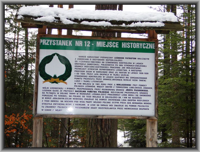 ..."W tym miejscu w 1901 roku prof. J. Miklaszewski przy pomocy polskich Leśników między innymi z Tomaszowa Lubelskiego, Zawadek,