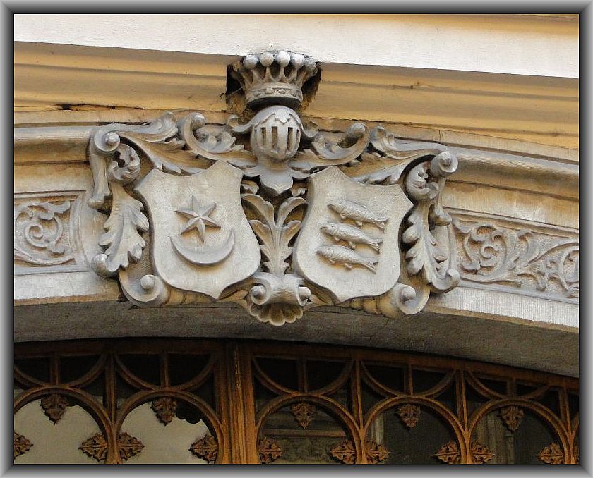 W portalu wejściowym herby
