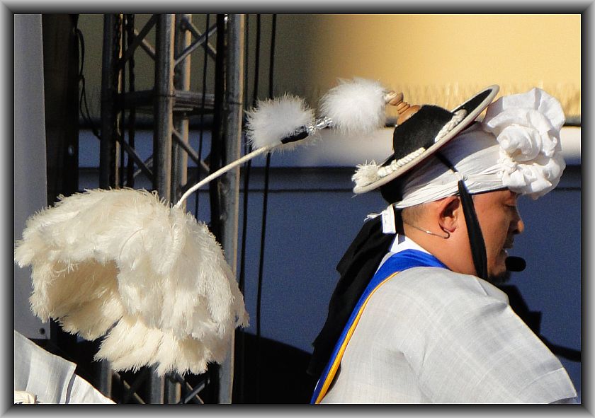 Sangmo jednego z tancerzy nie zdobiła wstążka tylko piękny wieniec białych piór ptasich.