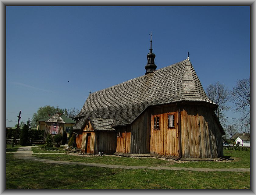 Modrzewiowy kościół MB Bolesnej i św. Andrzeja Apostoła wyświęcony w 1595r.