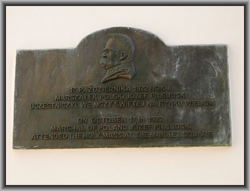 ZAMOŚĆ. Padół Zamojski. Tablica na Ratuszu, upamiętniająca pobyt Marszałka w dniu 17.X.1922r. w mieście.