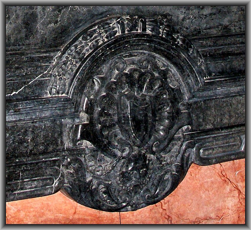 ŻÓLKIEW. Kościół św. Wawrzyńca. Herb Janina. Epitafium królewiczów Sobieskich Konstantego Władysława i Jakuba Ludwika.