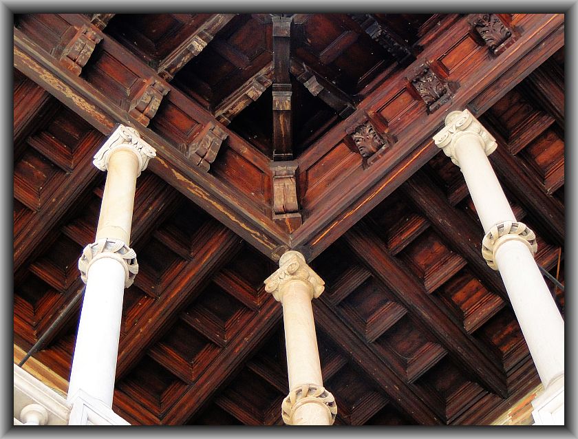 Strome dachy, wysunięte od śniegu i deszczu okapy, podparte kolumnami uwzględniały ówczesne gusta i wymogi.